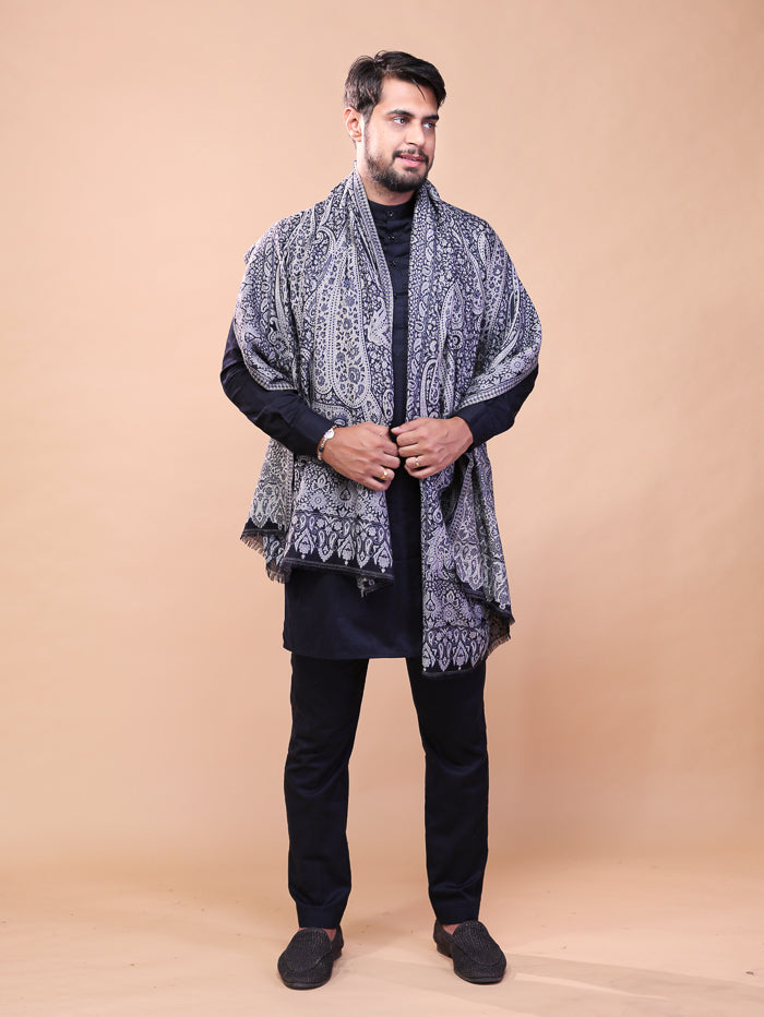 Big Paisley Kani Stole For Men Black