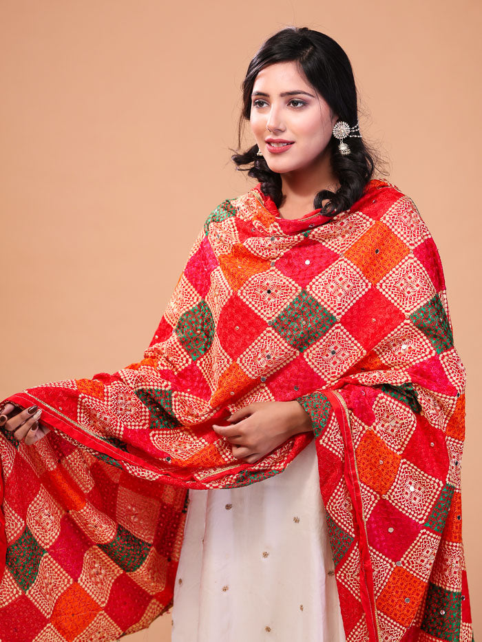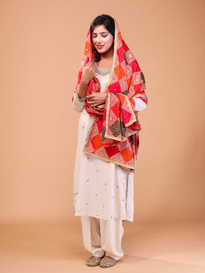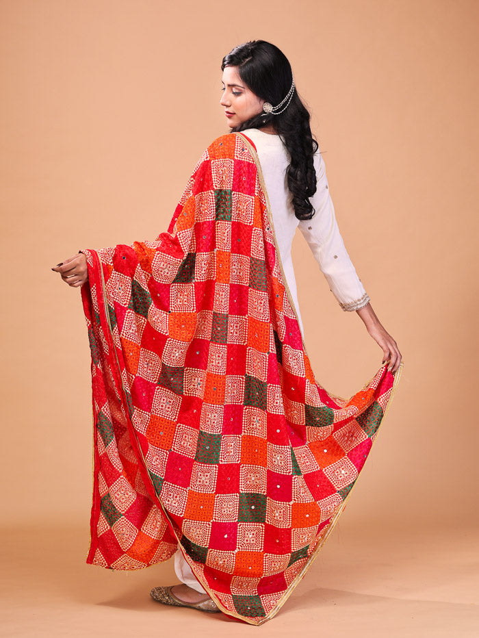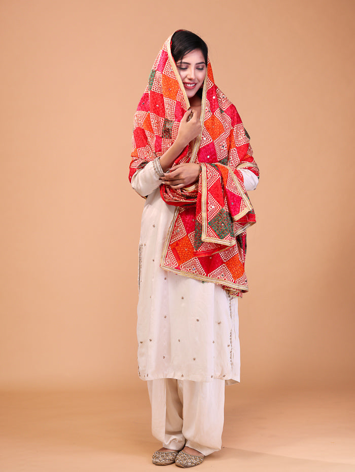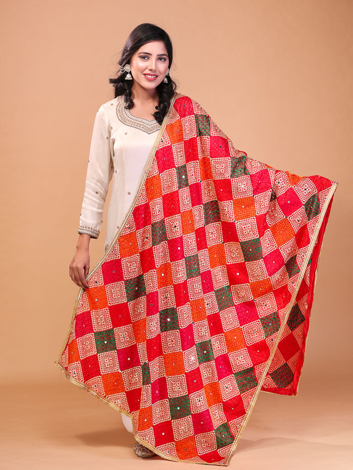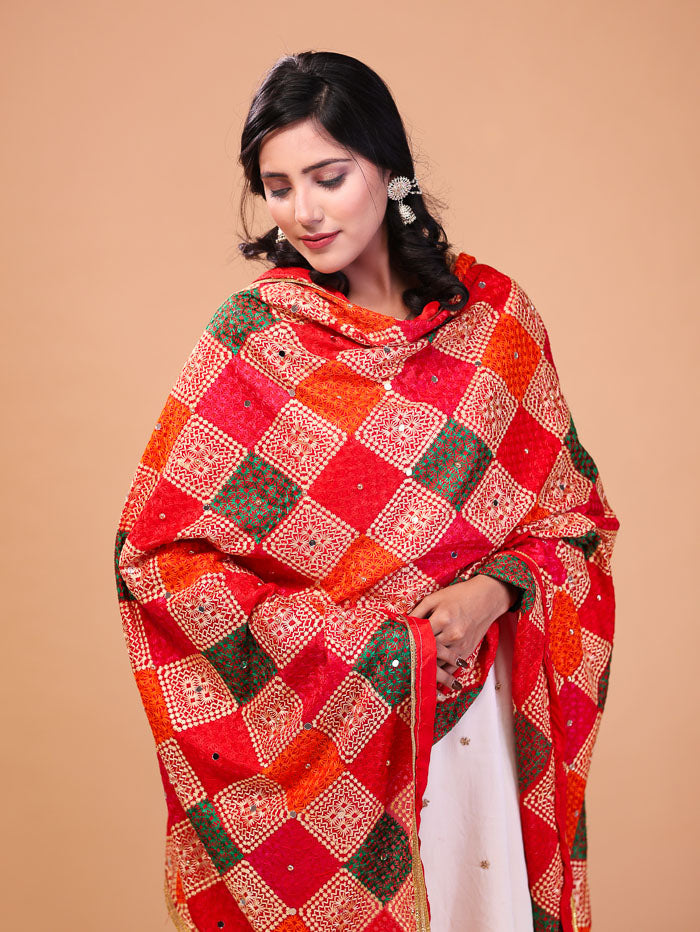 Cross Block phulkari Dupatta