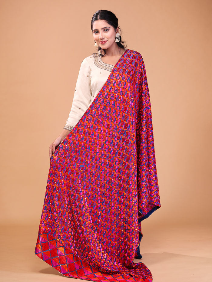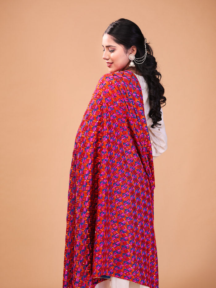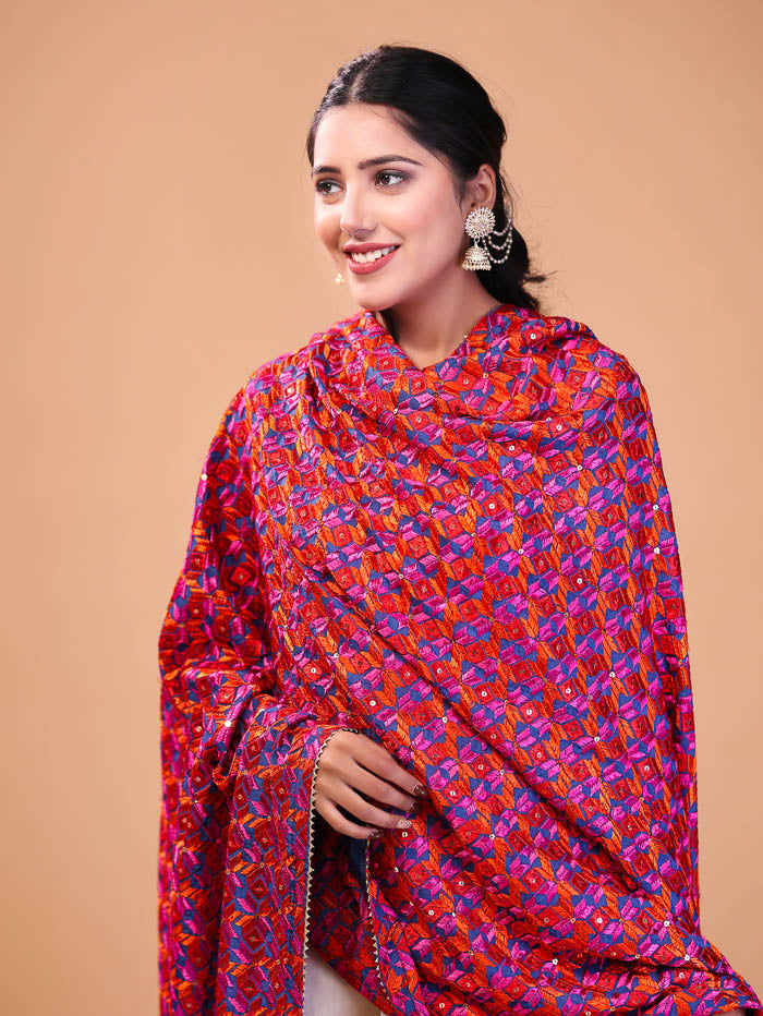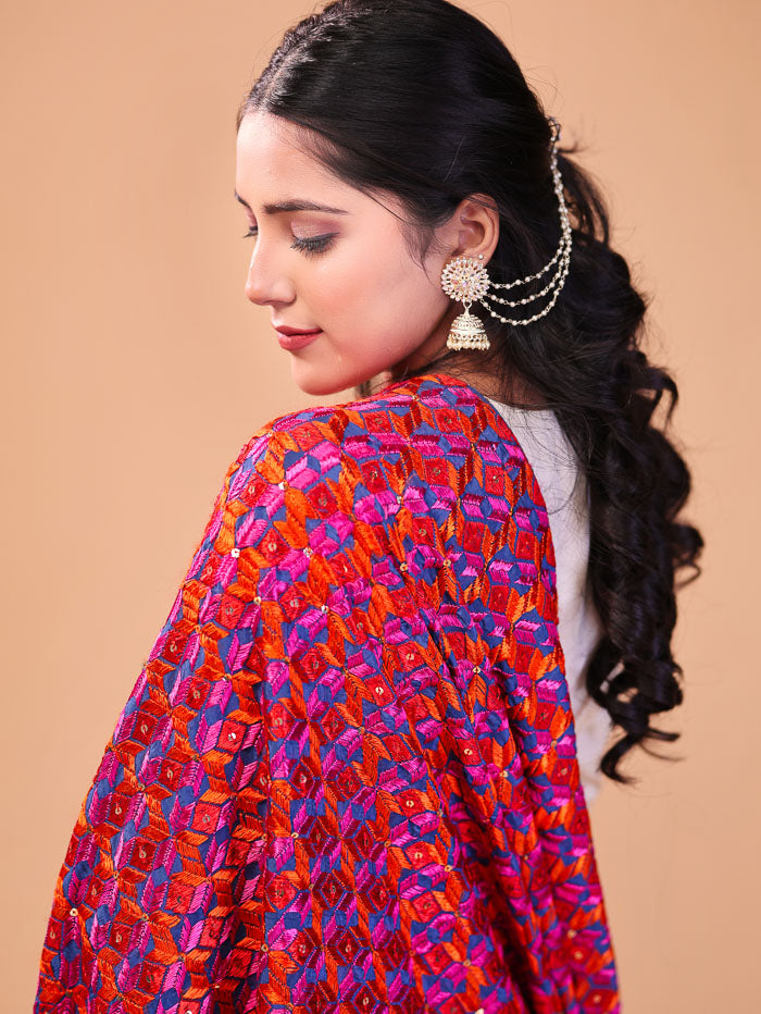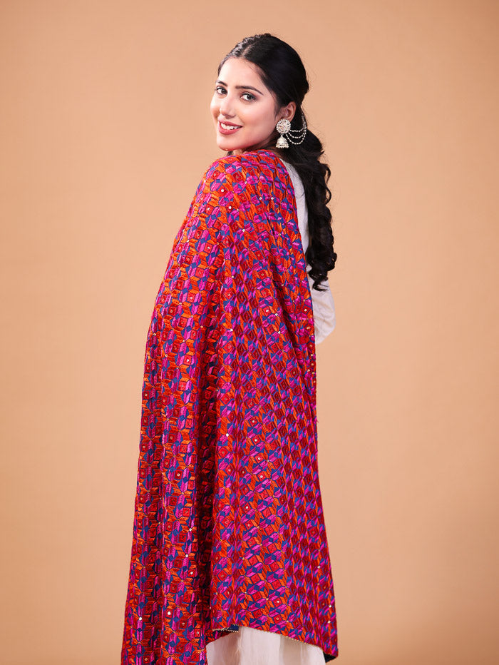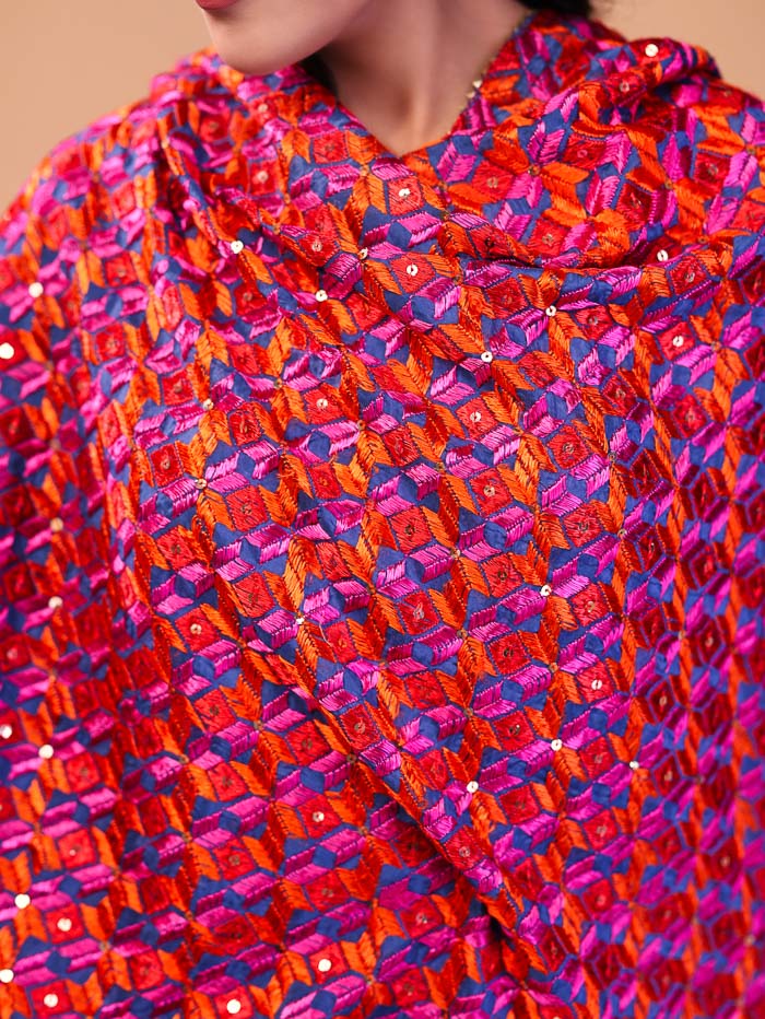 Ethnic Embroidered Phulkari Dupatta Pink