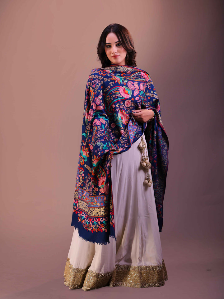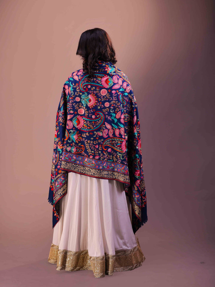 Fine Wool Big Paisley Embroidery Shawl