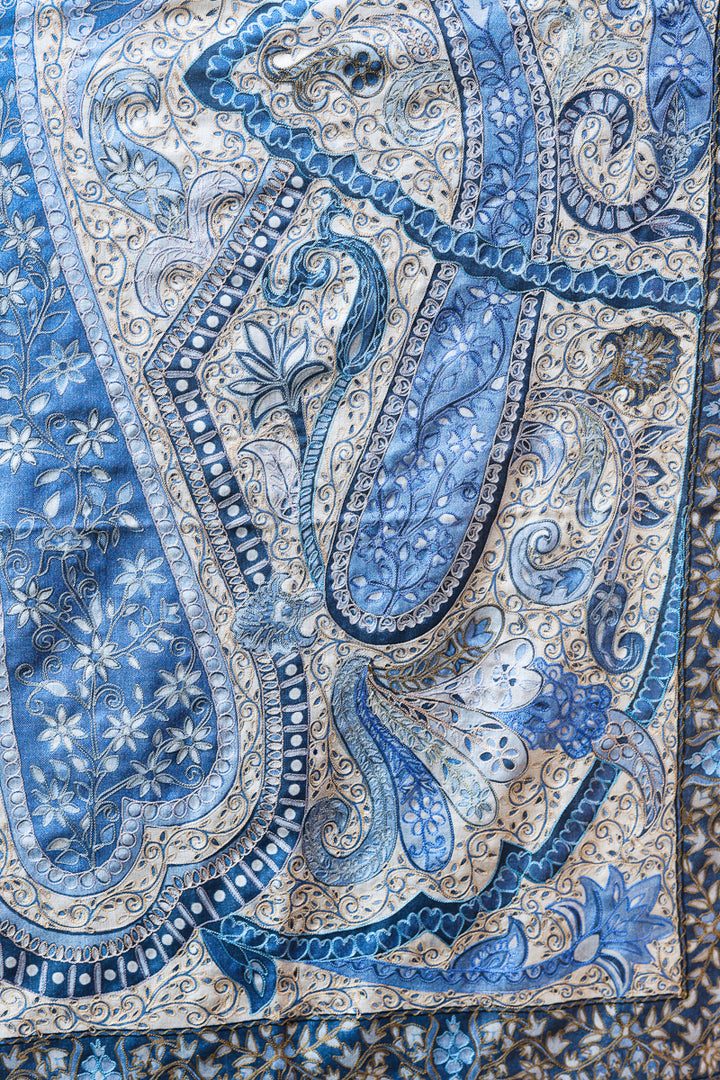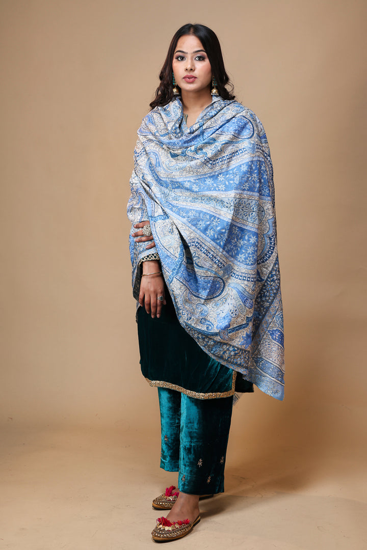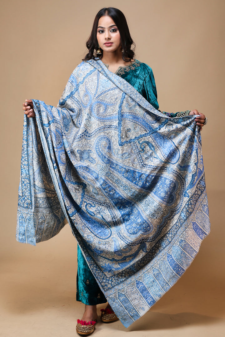 Fine Wool Big Paisley Kalamkari Embroidery Shawl
