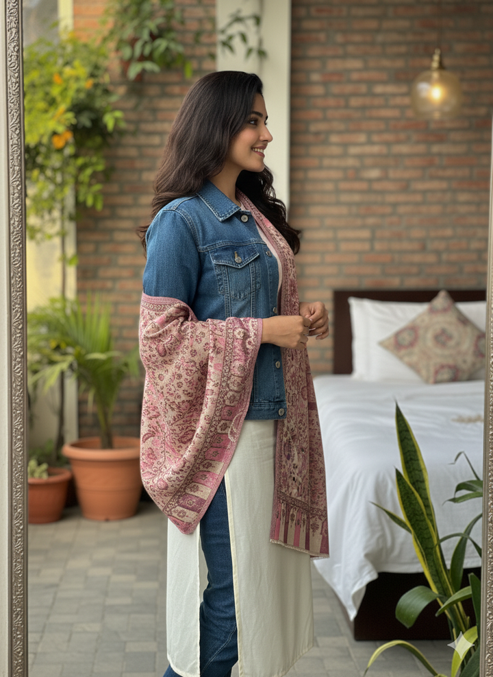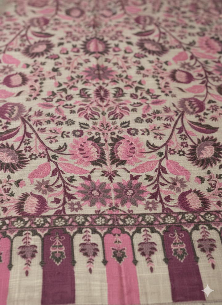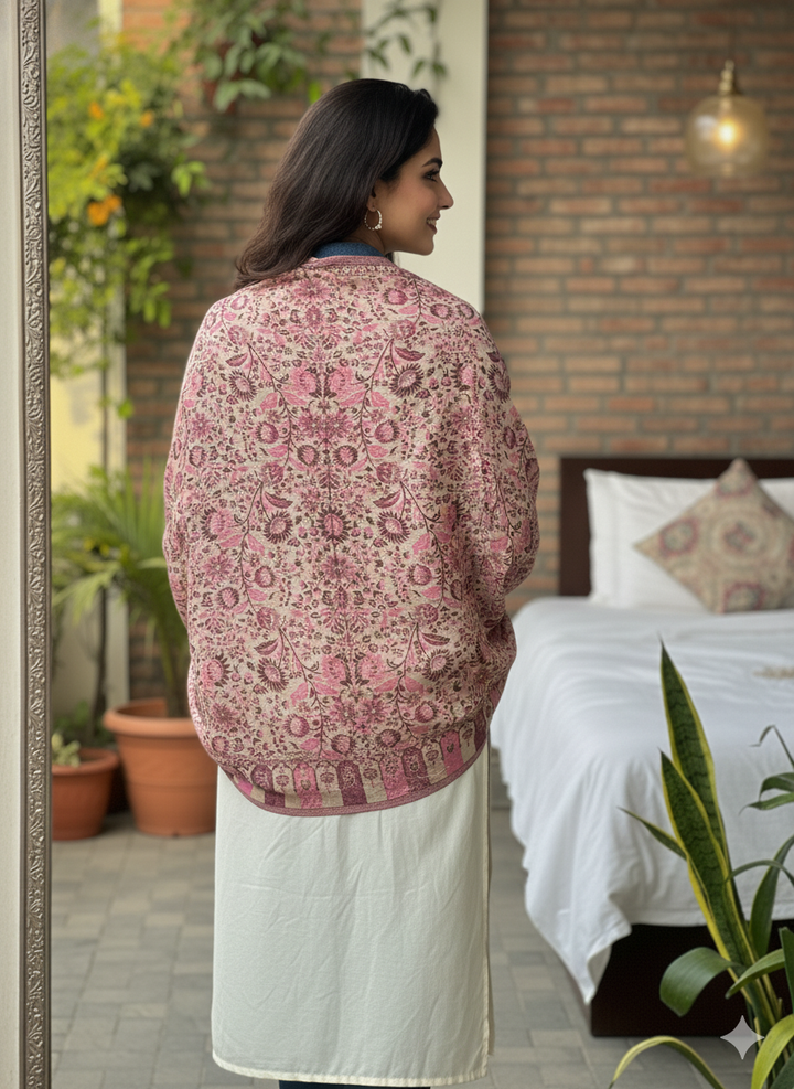Fine Wool Flower Kani Stole Rose