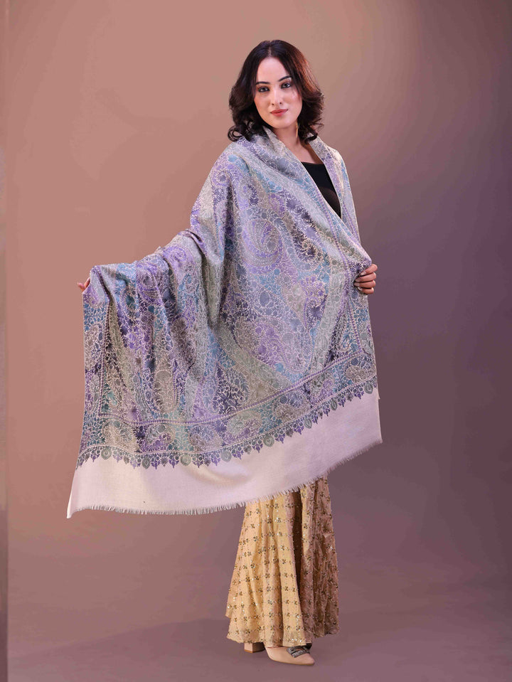 Fine Wool Full Jaal Aari Embroidery Shawl