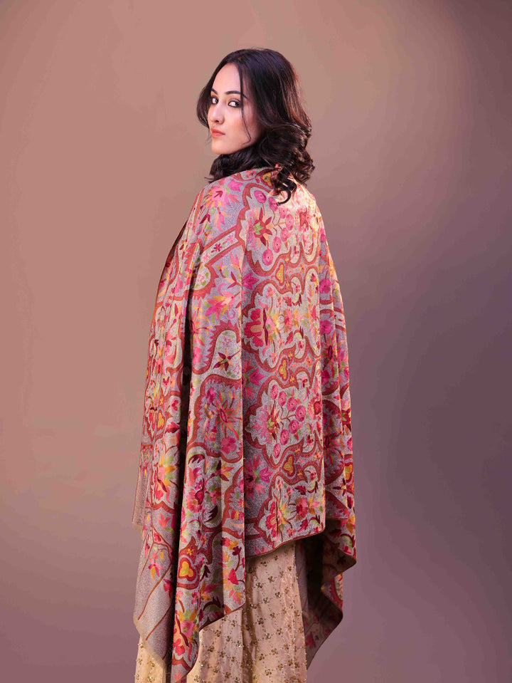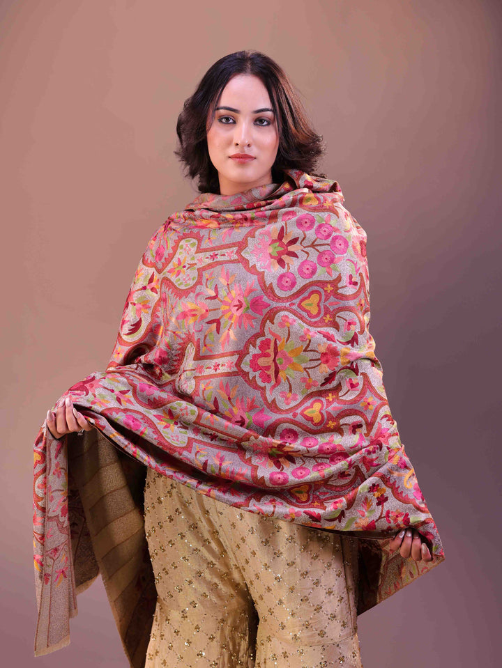Fine Wool Full Jaal Floral Embroidery Shawl