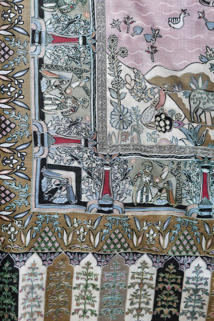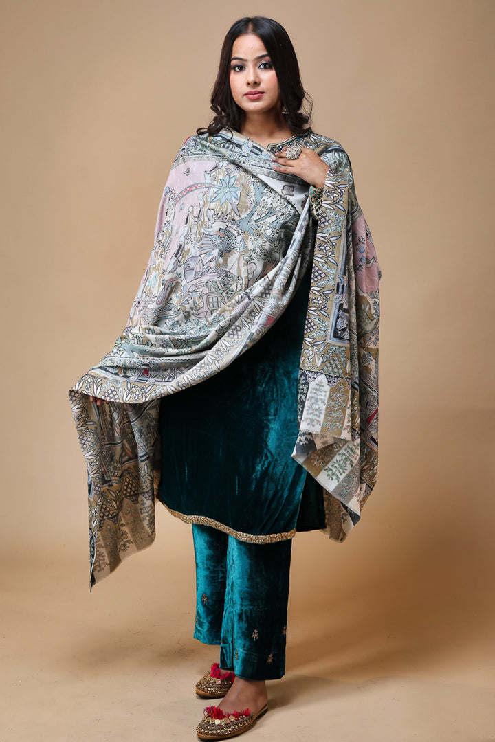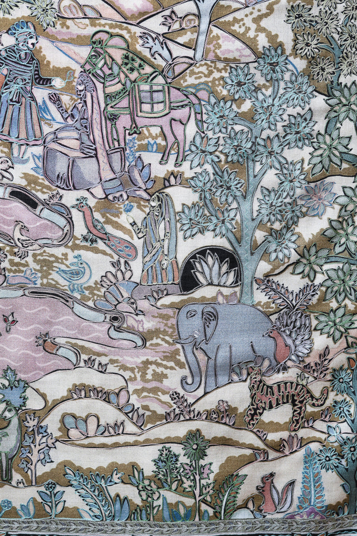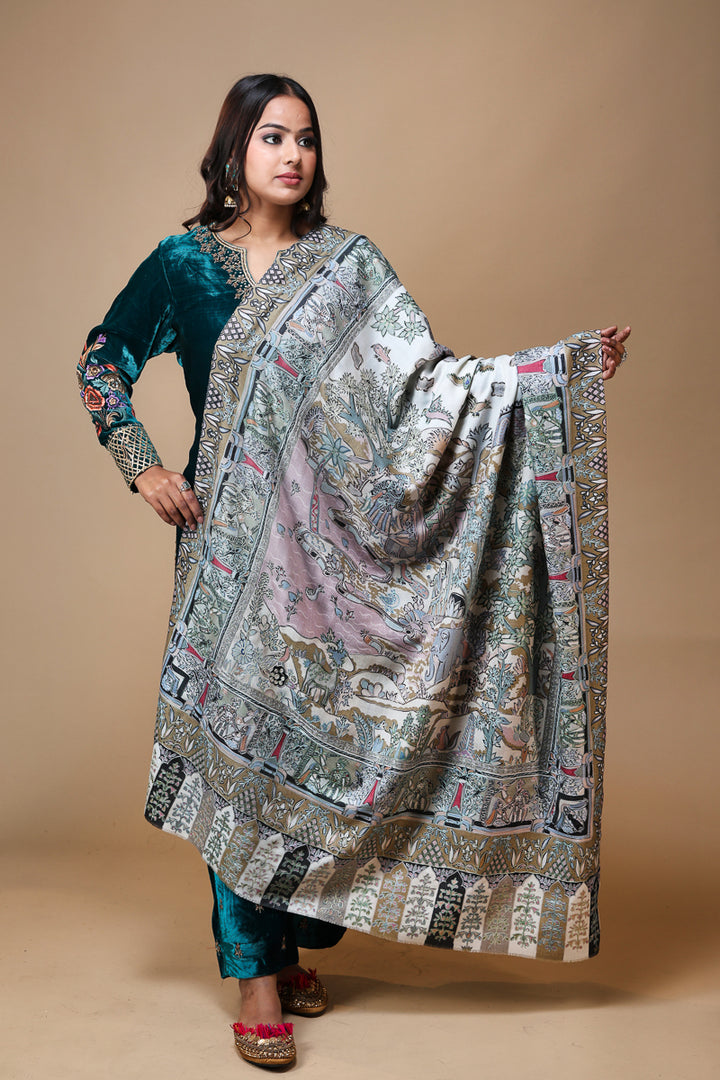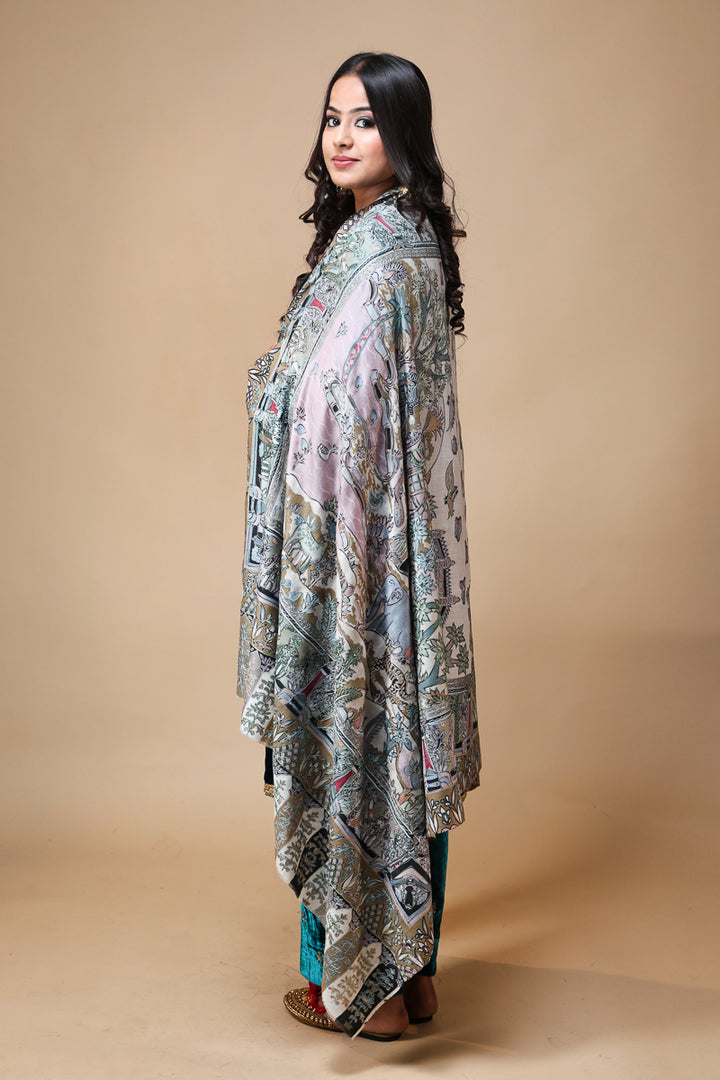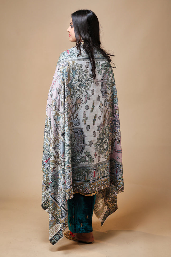 Fine Wool Riverside Kalamkari Embroidery Shawl
