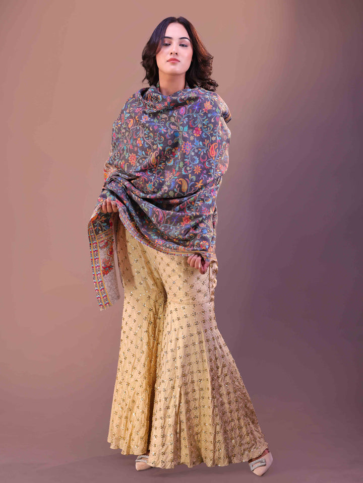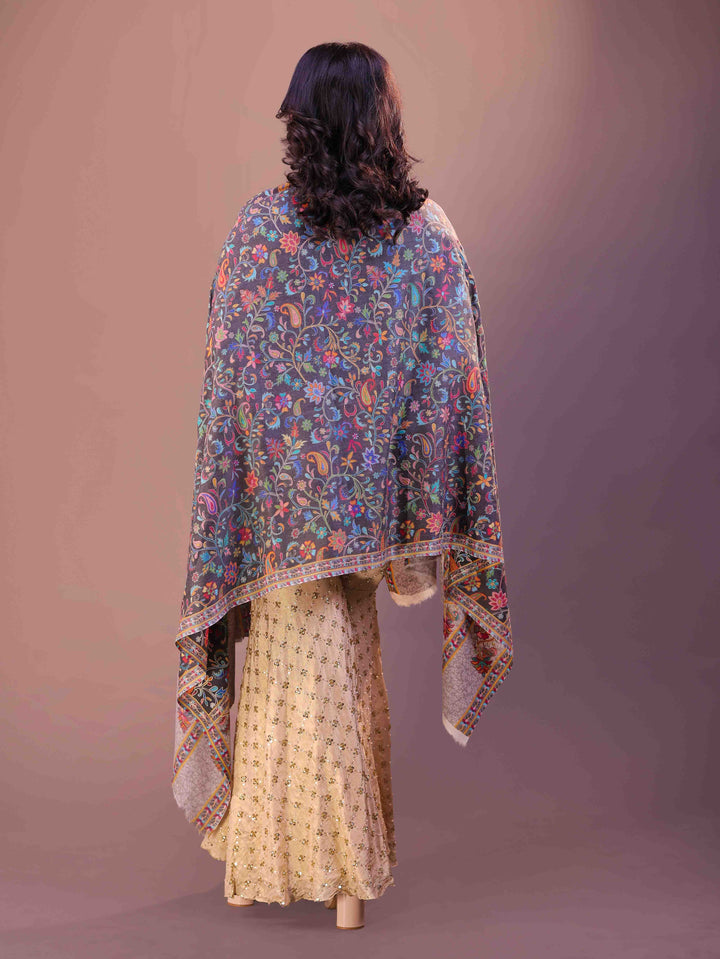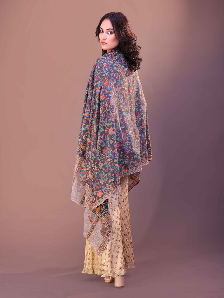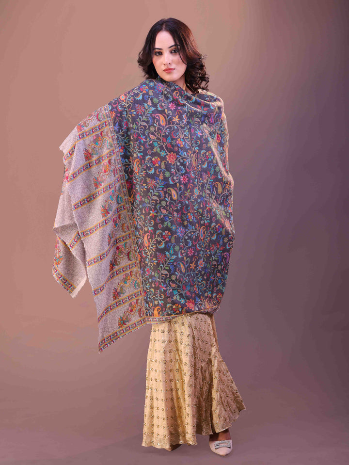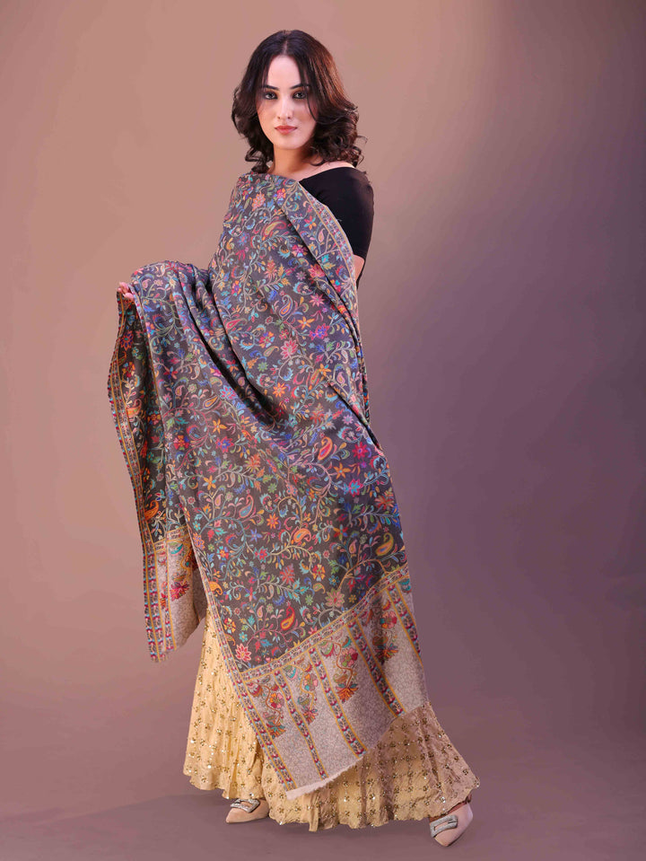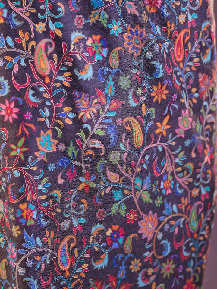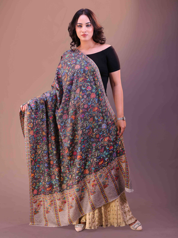 Flower Paisley Kalamkari Embroidery Shawl Black