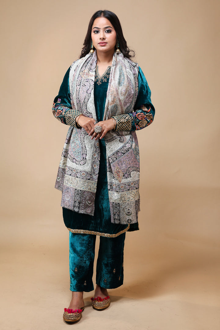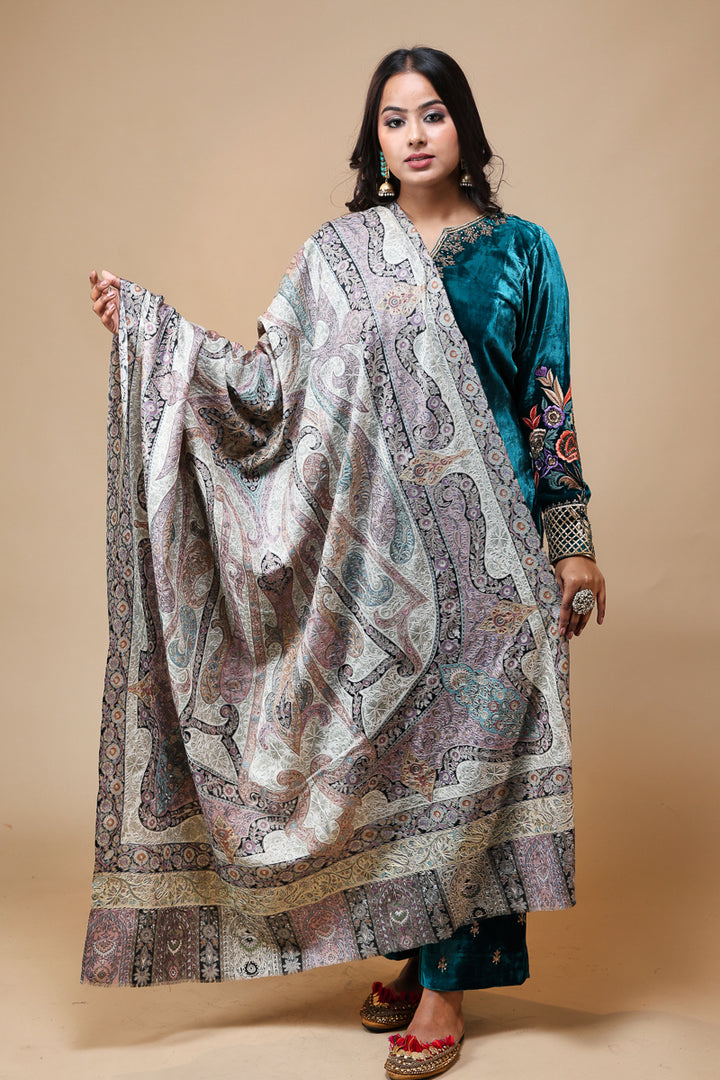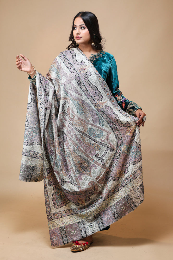 Multi Paisley Jaal Kalamkari Embroidery Shawl