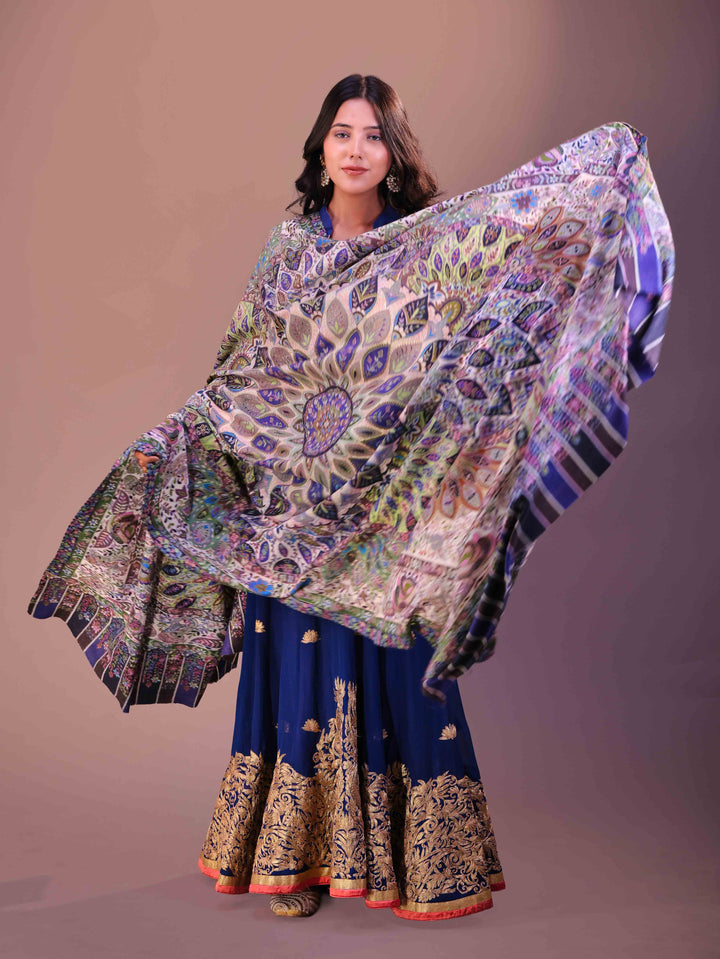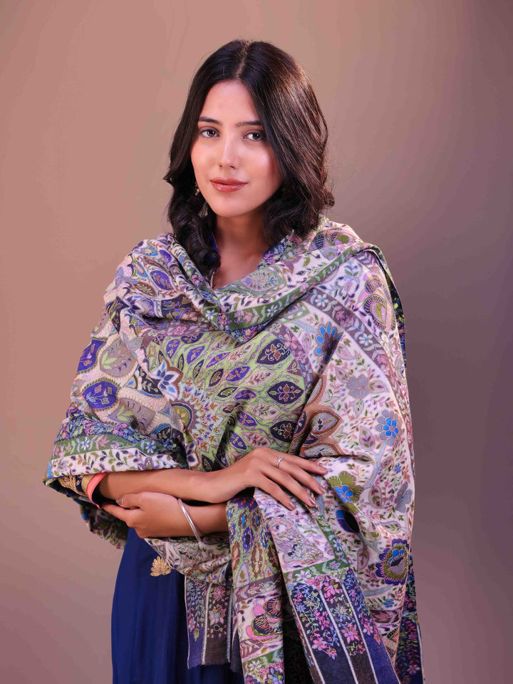 Pure Wool Hand Embroidered Kalamkari Shawl