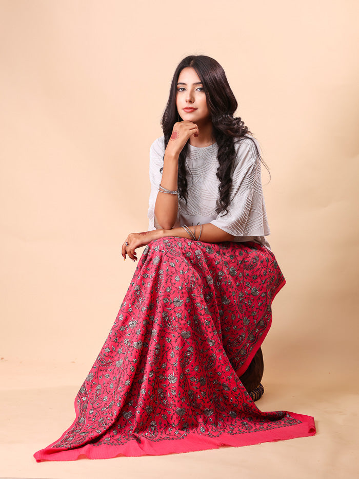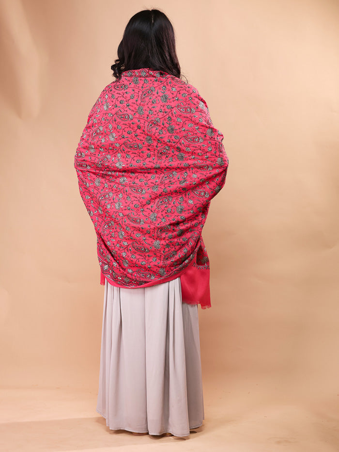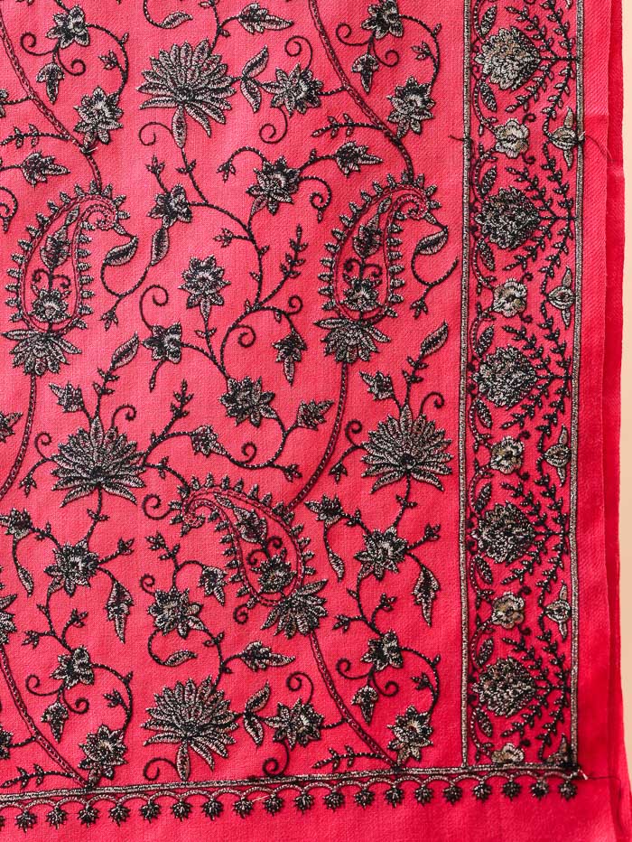 Small Paisley Zari Embroidery Shawl DJ Pink