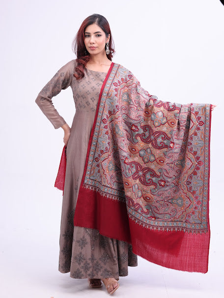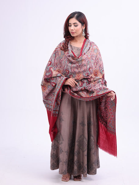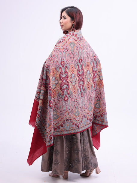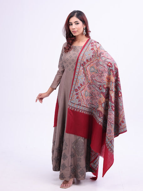 Vertical Paisley Kashmiri Embroidery Shawl Maroon